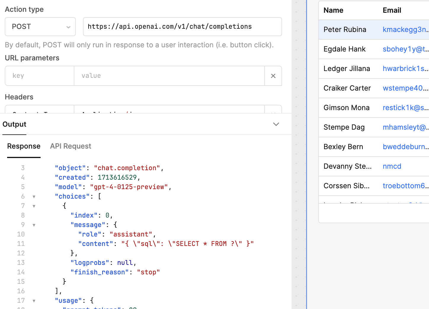 We use the OpenAI API because we need to set the “response_format” as “json_object.” This is something we can’t control out of the box with Retool AI actions. I hope this is something they will add in the future.