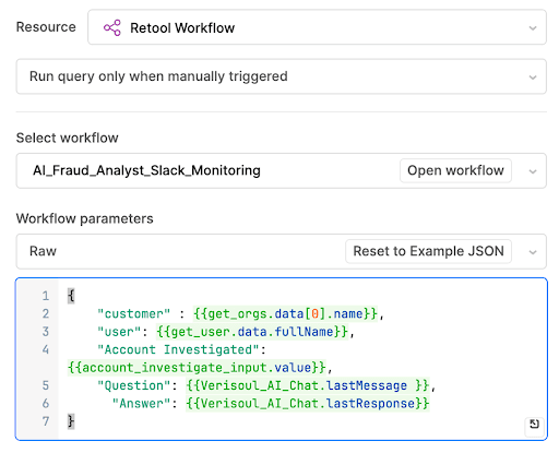 Configuring these real-time data flows only took 15 minutes, as I used Retool’s pre-built components. The data flows enable the AI Fraud Analyst to serve situationally aware responses drawing from the latest fraud analytics data.