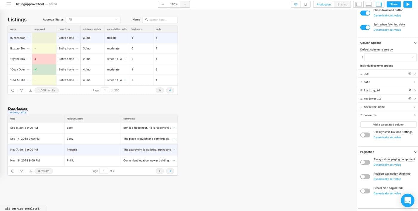 That’s it! You should have a working listings table with filters and search. Let’s get some more info on those listings and their reviews!