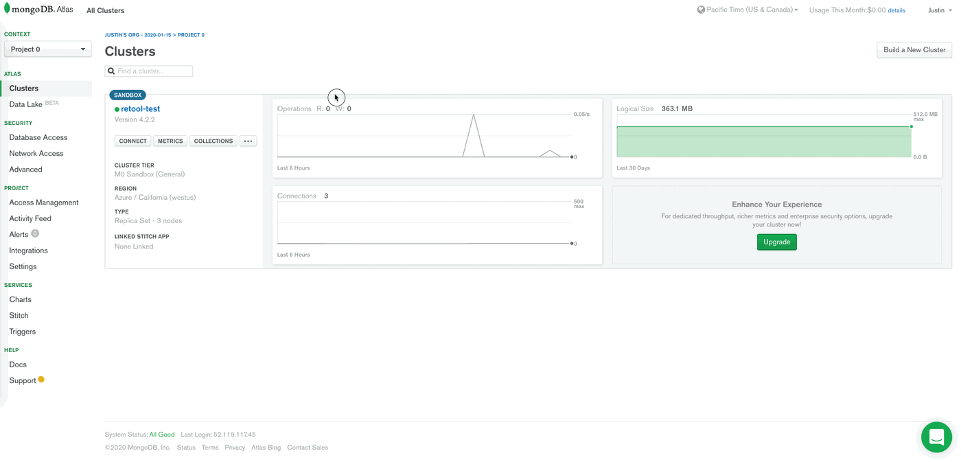 . Remember, you’ll need to change this to point to the right database, so here’s what you should be entering into Retool: mongodb+srv://gagejustins:<password>@retool-test-betz7.azure.mongodb.net/sample_airbnb