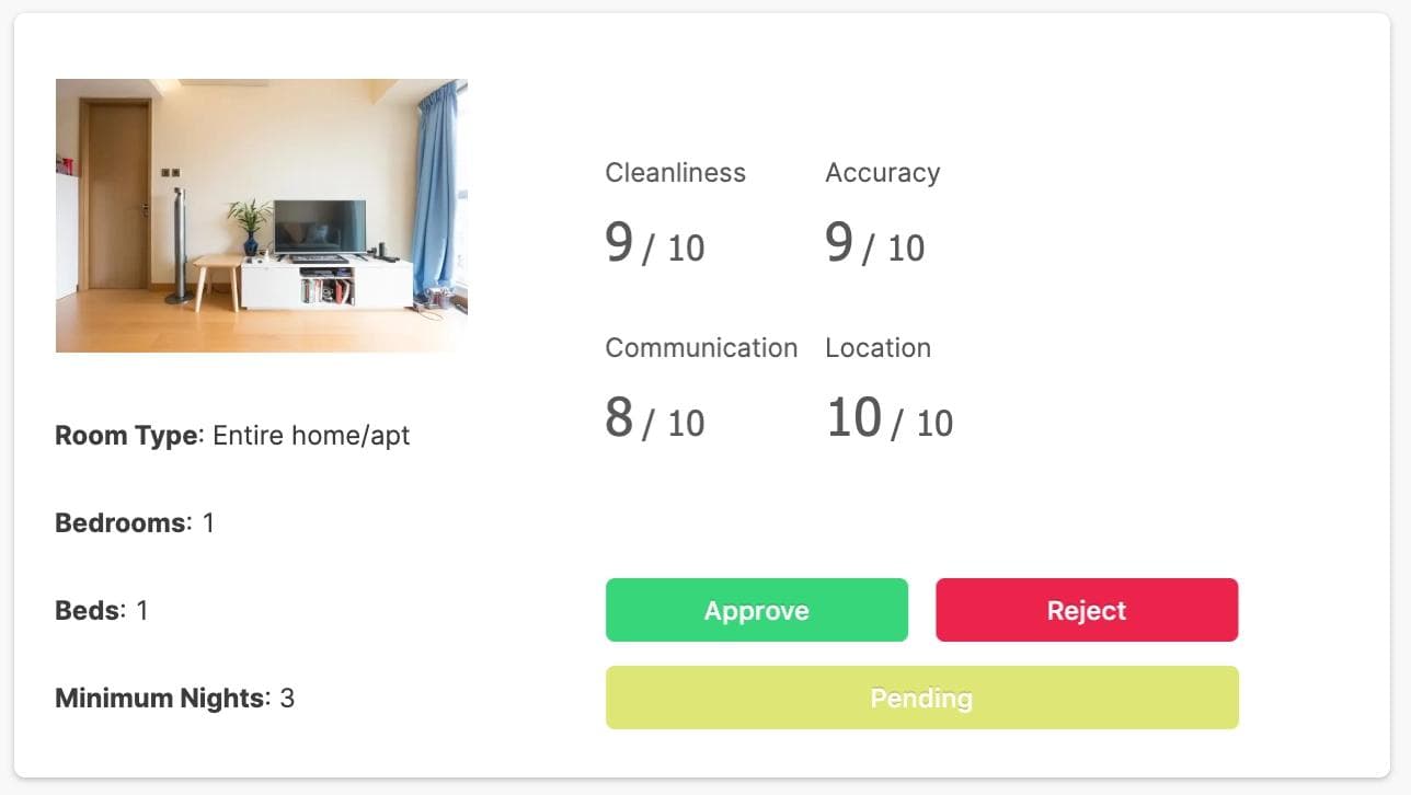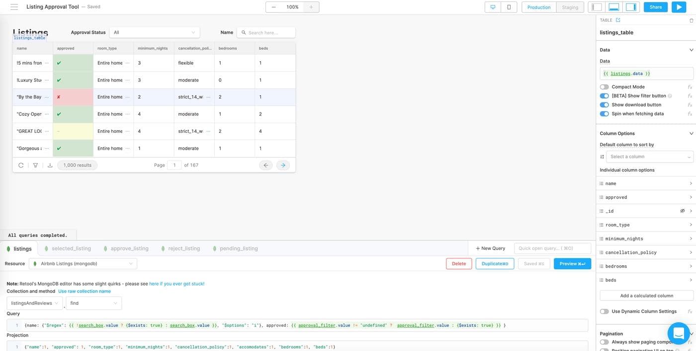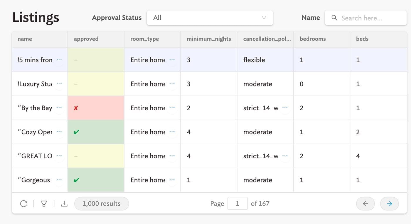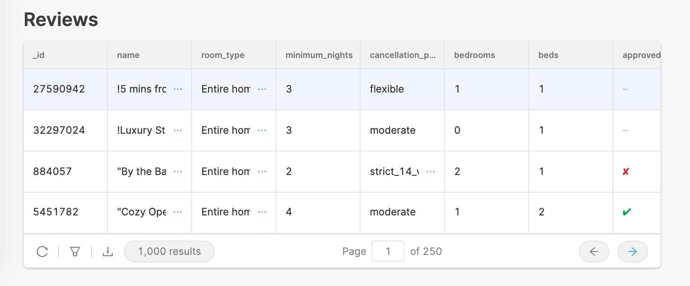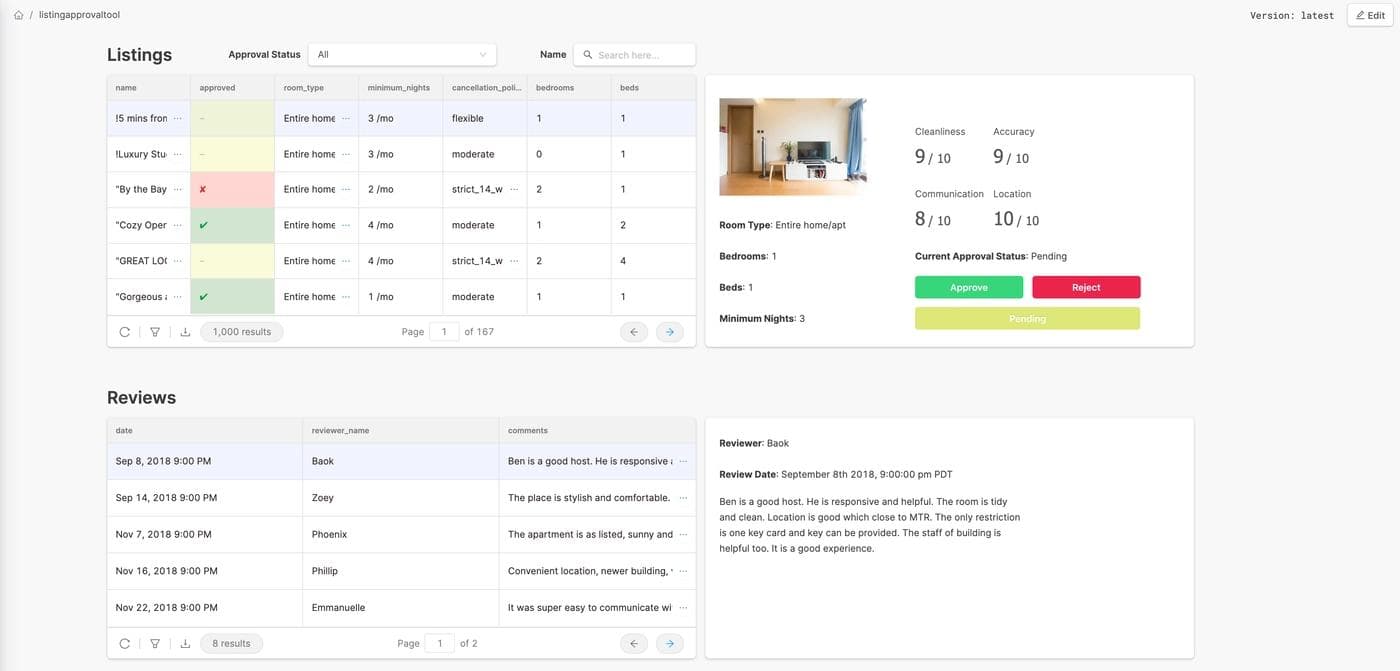 If you’ve ever worked at a marketplace company, you know that not every listing should be approved. If you’re managing any kind of listing data – apartments, ecommerce SKUs, or even vendor approvals – you might use or need a tool that lets you easily approve and reject them. In this post, we’re going to build a full featured Airbnb listing review app that reads and writes to MongoDB, with minimal code, in fewer than 60 minutes. Here’s what the finished product is going to look like (you can use it!):
