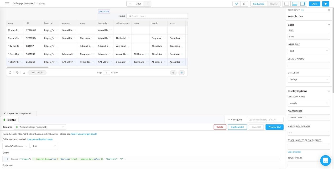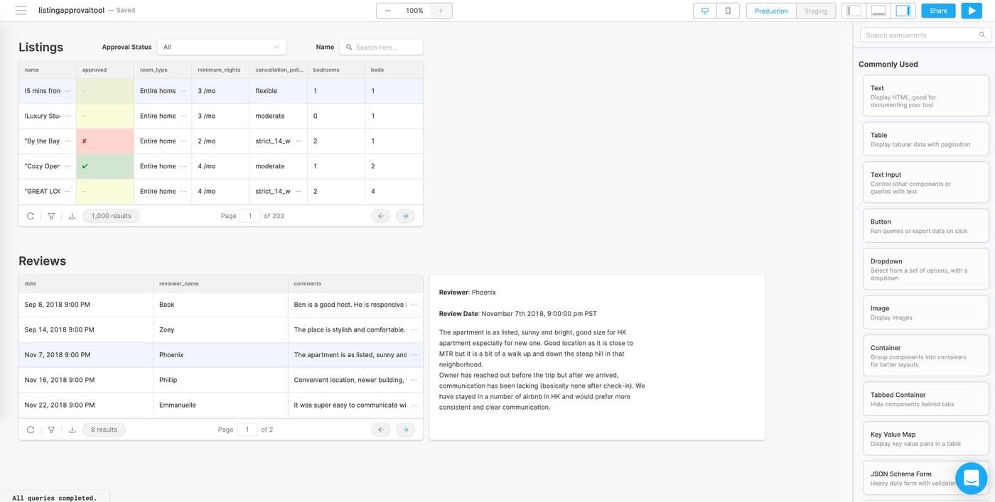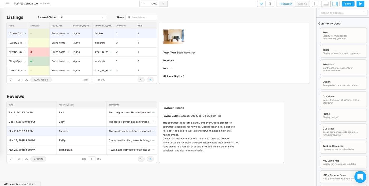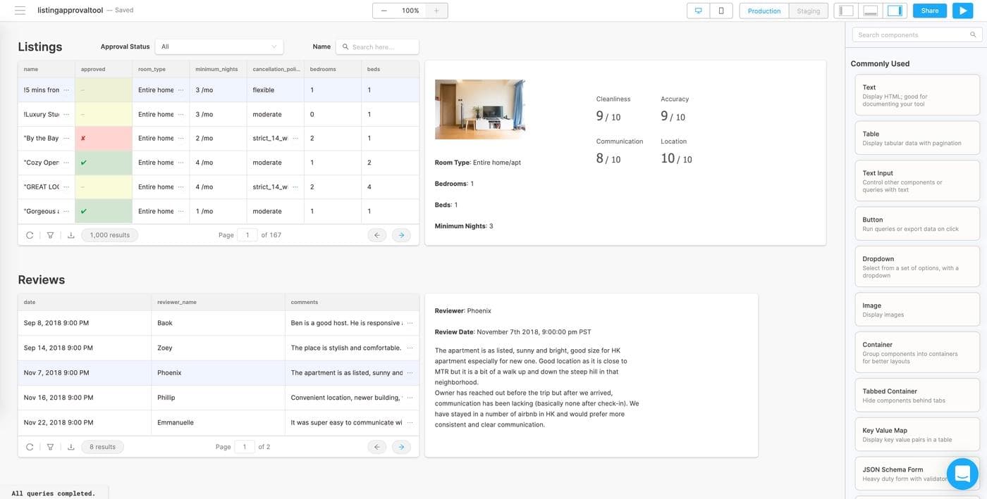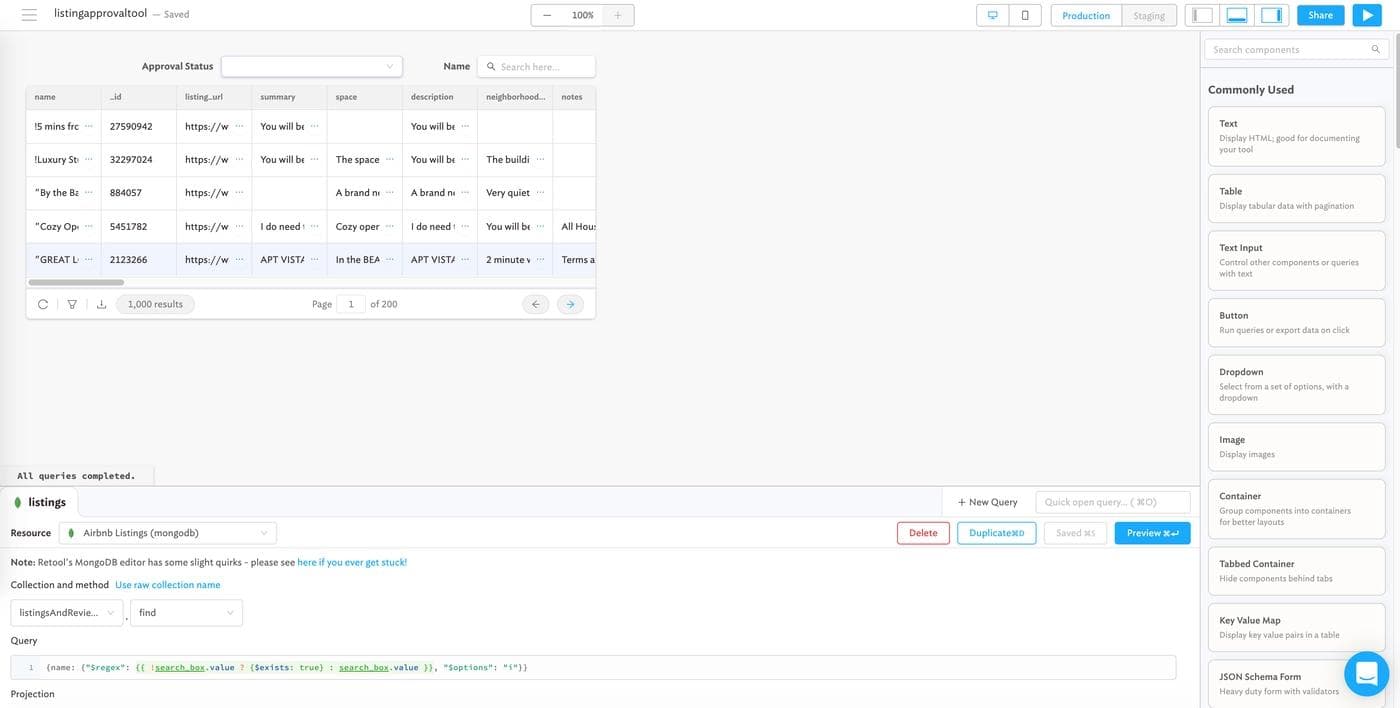 If you’ve ever worked at a marketplace company, you know that not every listing should be approved. If you’re managing any kind of listing data – apartments, ecommerce SKUs, or even vendor approvals – you might use or need a tool that lets you easily approve and reject them. In this post, we’re going to build a full featured Airbnb listing review app that reads and writes to MongoDB, with minimal code, in fewer than 60 minutes. Here’s what the finished product is going to look like (you can use it!):