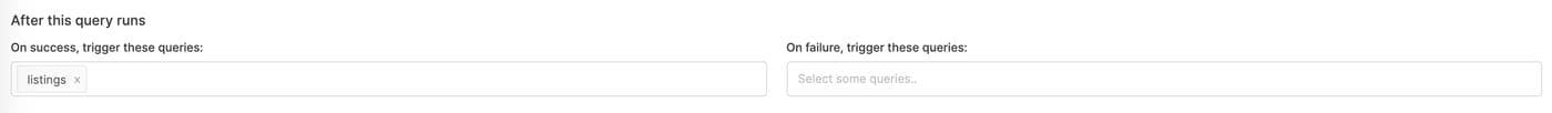 ), scroll down to the “After this query runs” section and add in “listings,” which is our original listings query.