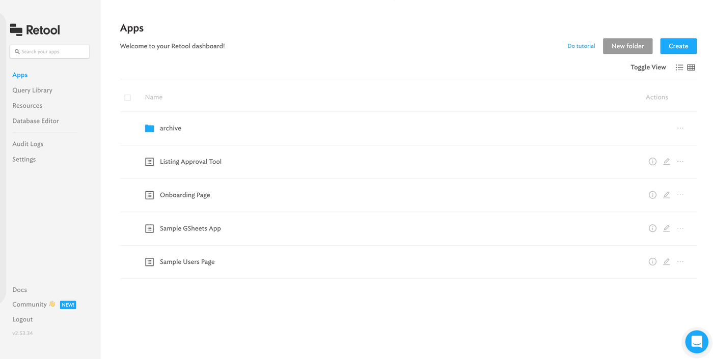 If everything went well, we’re all ready to go. After adding your MongoDB resource, you should automatically be redirected back to the Retool home screen, but if you’re not, click on “Apps” on the left sidebar. Let’s get building!