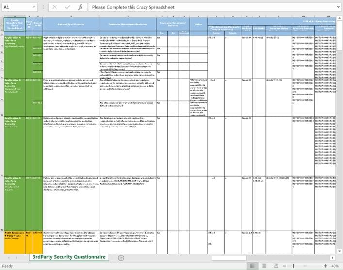 Similarly, when we were talking to customers, they'd often ask us to fill out security questionnaires, which were invariably onerous. These security reviews were often large Excel spreadsheets filled with hundreds of questions, which slowed down our iteration speed, and delayed us from discovering if a particular customer was or wasn't a good fit.