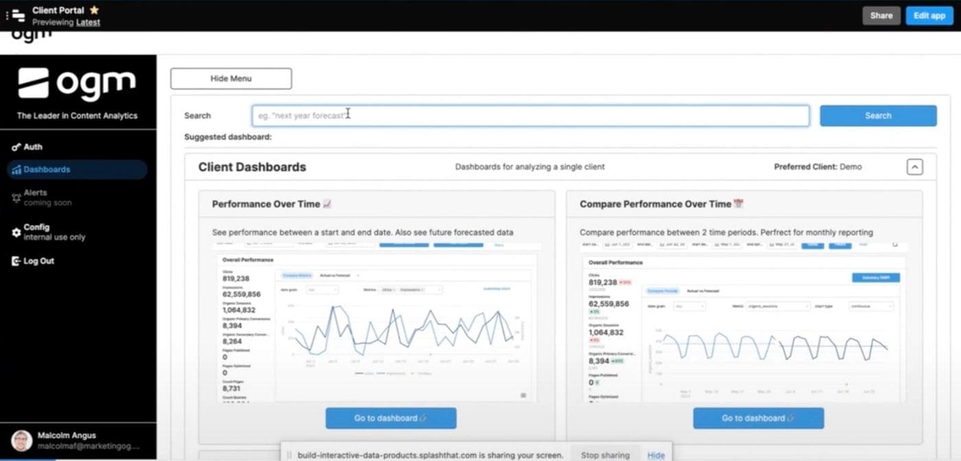 To show an example of what’s possible, we spoke with Malcolm Angus, Head of Analytics at OGM. As an SEO agency working with high-growth B2B companies, OGM provides internal and external users with dashboards and self-service tools. Here, we’ll walk through the key takeaways and explore how a small team at OGM builds data products that serve all their varied users.