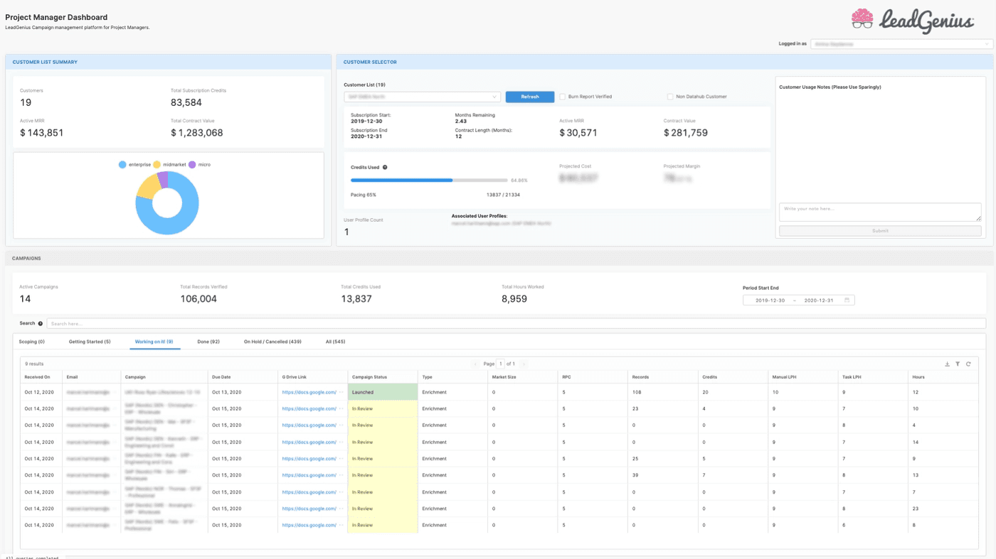 Project Manager Dashboard: An app that enables Project Managers to organize their data campaign workflows within a homegrown CRM.