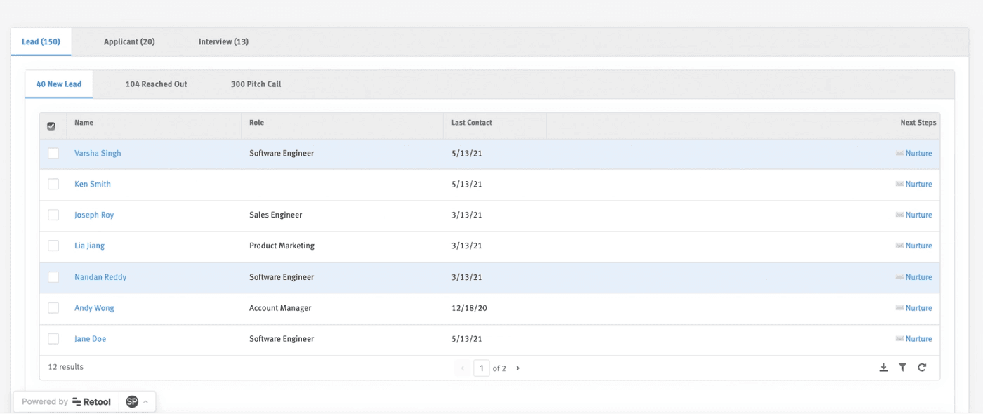 You might want to build an interface to help easily switch candidate stages, add custom notes, send emails, and enable custom views. With a simple Retool app you can keep your sheet structure as your back end, and create a UI front end that’s easy to use for anyone in your company.