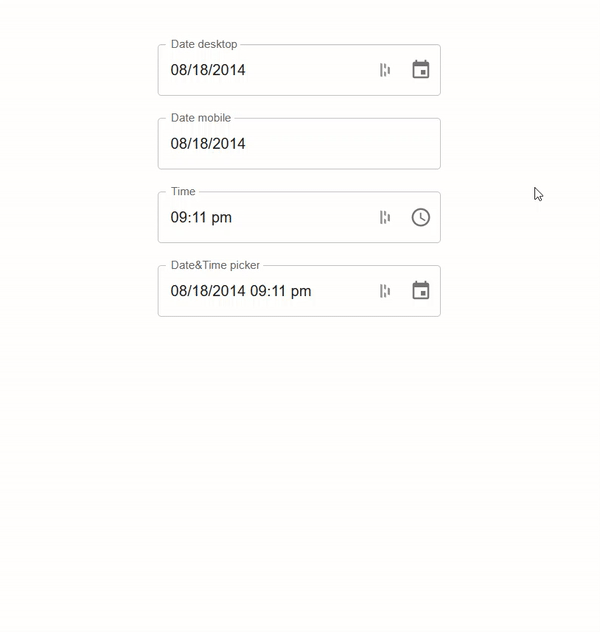 - Date mobile: selects dates with the UI most suitable for mobile devices