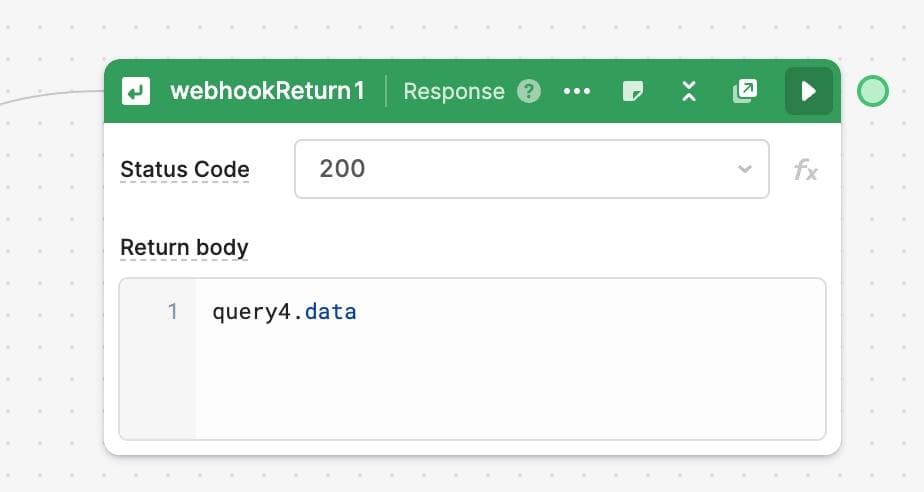 We can use the new webhook Response block to simply return the base64 version of the image generated above.