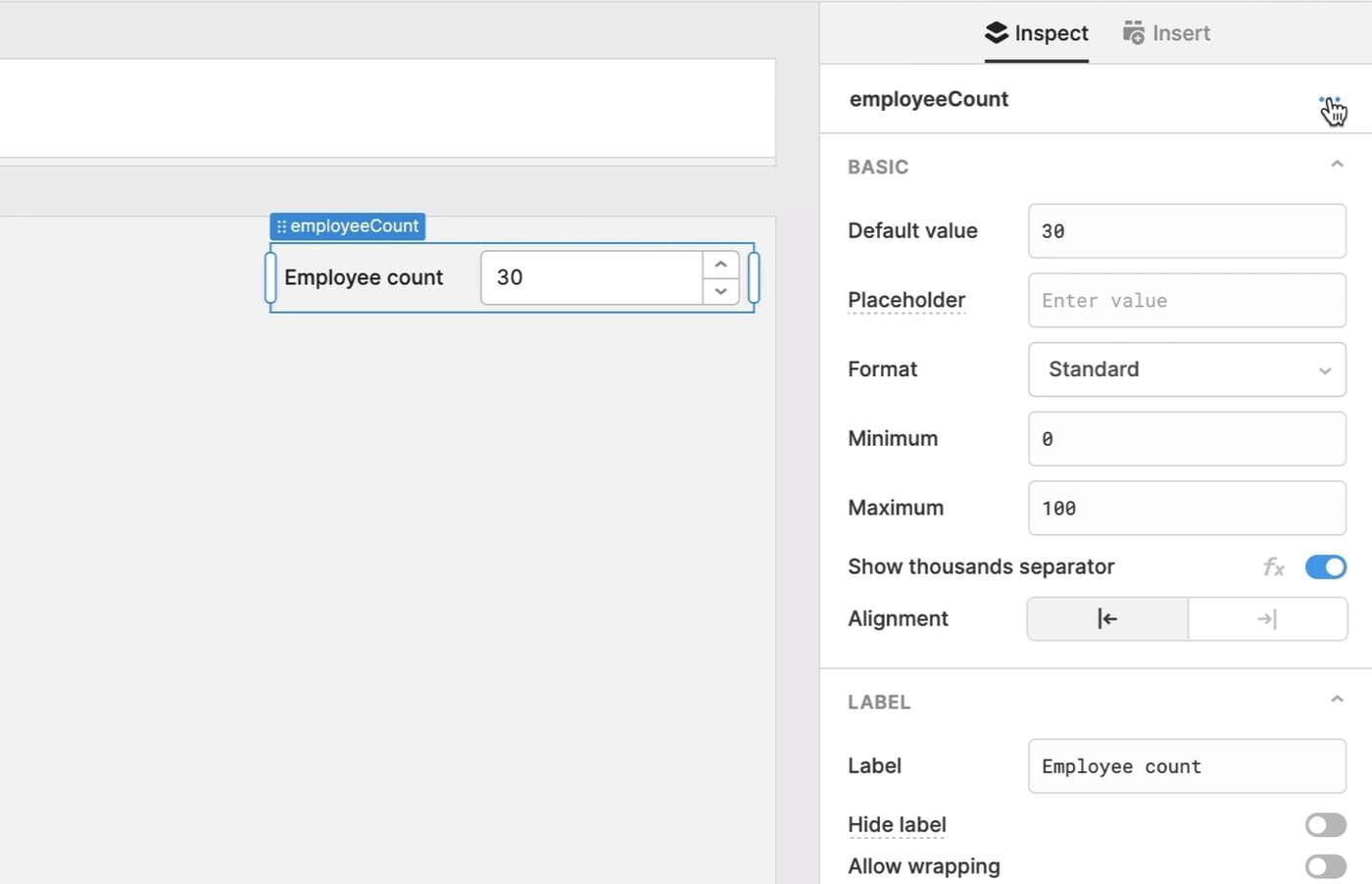 We’ve also overhauled Editable Text and broken out numeric functionality into its own component, Editable Number. In addition to their ability to edit static text on click, each component now carries the same features of the core Text and Number inputs like configurable prefix/suffix text, built-in validation rules, and, for Editable Number, specialized formatting like percentage, currency, and more. You can also choose text size—for example, designate a text box as an H1 heading—so that you can use this as an easy customizable text component for your end users wherever you need.