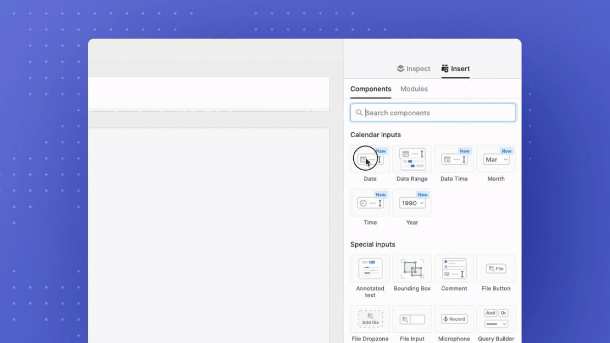 We’re investing in our input components to remove friction for developers building any UI in Retool. To do that, we’ve expanded our library to 1) provide brand new input components to unblock new UI patterns, 2) add more robust functionality to our existing input components, and 3) offer powerful, preconfigured components for immediate utility.