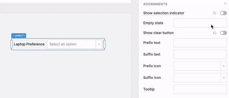 From the color of the Checkbox icon to the rounded corners on a Button, we’ve expanded the Style Editor cohesively across all inputs so you can make our components your own. All components now have the ability to add adornments like tooltips, and text and icons in the prefix or suffix, with thousands of new icons to choose from.