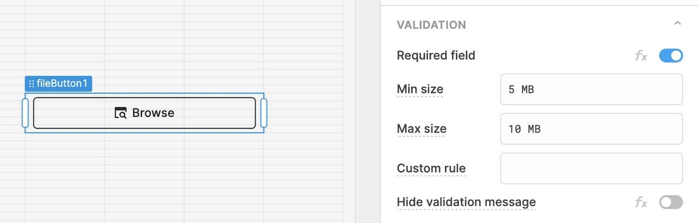 Every single new input comes with built-in validation options, allowing you to mark any field as required, limit character counts, check a regex pattern, clamp numbers, and control upload size. Don’t see a parameter you need? You can now add custom validation by writing a JavaScript expression to return an error message.