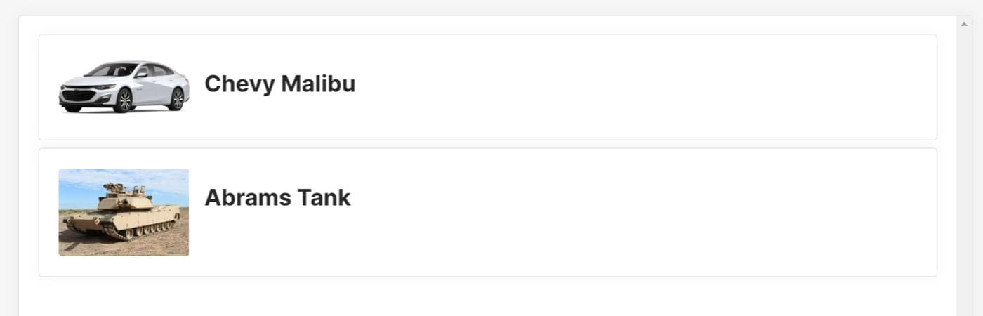 . You should see a list of vehicles. Add another vehicle to watch your list update automatically.