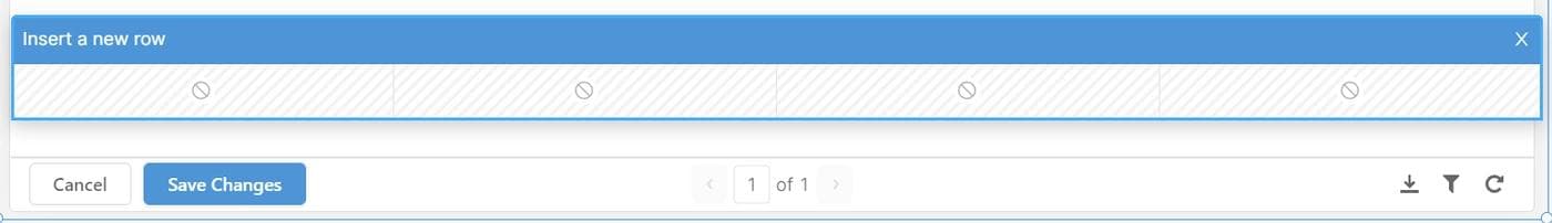 When you open the new row editor, the values in the editor are added to the table’s newRow