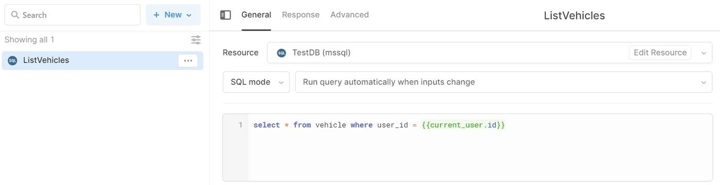 To list a user’s vehicles, you’ll need to run a SQL query. In the query editor, double-click on the default query query1