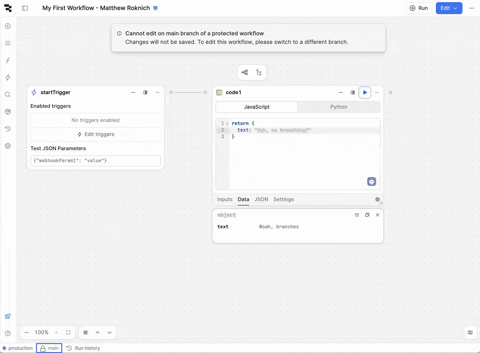 - Use git-based branches to coordinate multiple developers working on the same workflow at the same time
