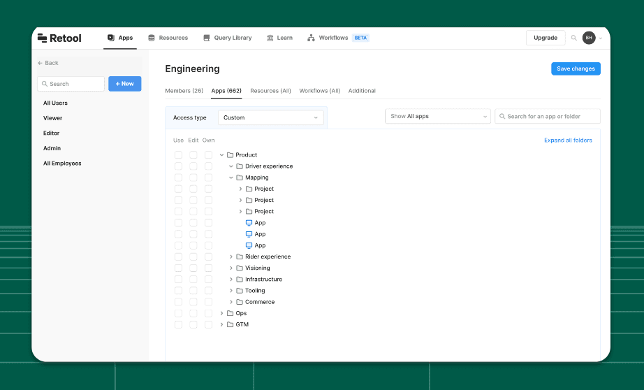 Managing your Retool applications just got more structured with subfolders. Organize your apps, workflows, and resources—with built-in security inheritance that keeps your resources protected. We've implemented proper permission inheritance to ensure organizational security: child subfolders and apps must maintain at least the same permission level as their parents, and moving resources requires appropriate access levels (for example, own access for the object being moved, and Edit or Own access for the destination).