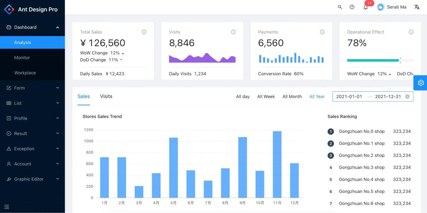 However, AntD offers Ant Design Pro, an out-of-box UI solution for enterprise applications. Ant Design Pro comes equipped with templates, components, and a corresponding design kit.
