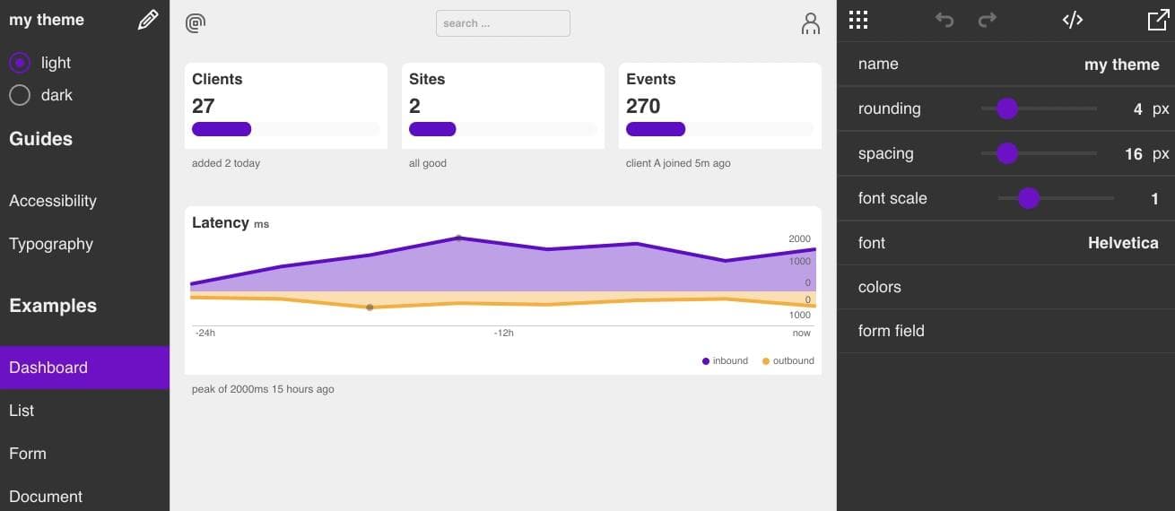 Blueprint is not the framework to use if you’re looking for preset-themes; there is a third-party theme framework, but with little adoption. However, Blueprint does offer light and dark mode themes out of the box, and design elements like classes, color schemes, and typography are customizable.