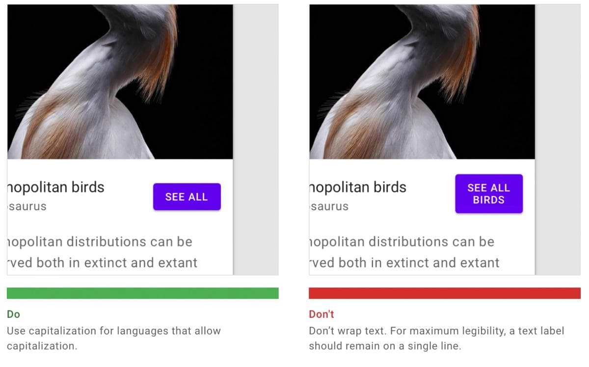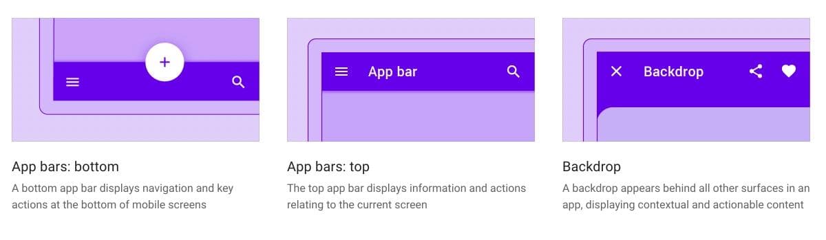 Google also provides guidelines for usage, design principles, dos and don’t, and best practices for each type of component. This makes it easy for developers to build well-designed apps regardless of intuition for design.