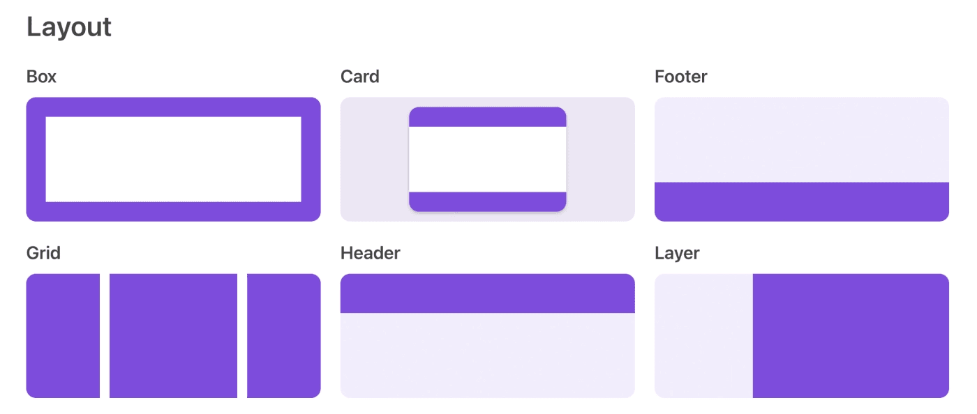 - Layouts is a system for the layout of an app with components like headers, footers, grids, cards, sidebars and more.