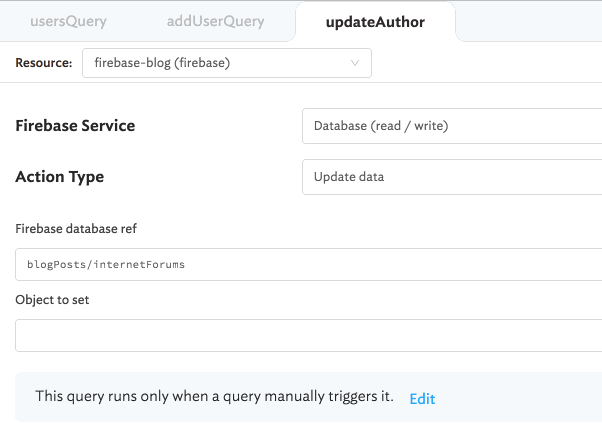 Other actions, like fetching blog posts from a particular Firebase ref, can be done similarly.