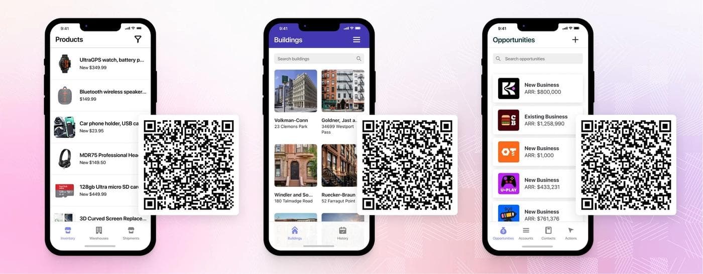 You can build all kinds of apps using Retool Mobile. For early builders, the most popular use cases have centered around supporting teams on the go—the teams working on construction sites, manufacturing in remote locations, scanning parcels at warehouses, or managing logistics and fulfillment for retail stores. Scan any of the QR codes below to see fully-functional sample apps built in Retool Mobile: