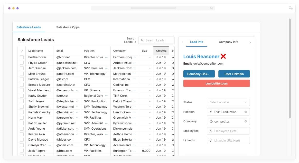 - Everything we need to know is in one place. I can jump to a user’s LinkedIn, Twitter, or company website in one click. I can read and write data to Salesforce, like bulk updating the status of multiple leads at once, directly in the Retool dashboard—eliminating the need to login to Salesforce to update leads or records.