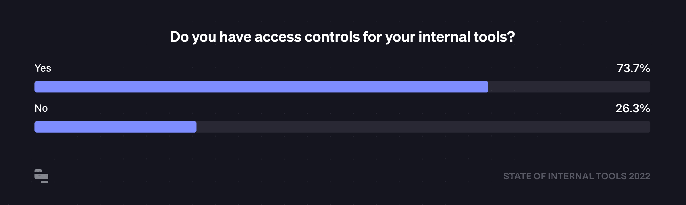 Over a quarter of respondents say they don't have access controls for internal tools, presenting a sizable risk exposure. An individual with unfettered access to internal tools potentially has the ability to add, edit, or delete information easily, which could disrupt operations or corrupt sensitive information. While breaches are more common for external apps than internal tools, companies often hold critical employee and user information inside of their internal tools (not to mention extremely sensitive business information!). The high profile internal admin panel breach at Twitter in 2020 was a good reminder that companies should consider internal security measures with the same degree of deliberation they pay to their external practices. Read more about how Retool keeps customer data secure.
