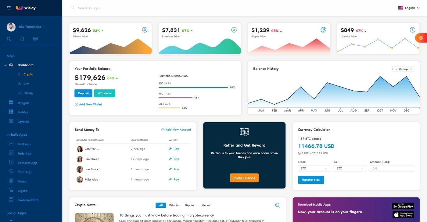 In every React admin template on this list, you’ll find more than one layout option. For some, that just means having the navigation panel on the left or right. Wieldy is the only React admin template on this list to offer 10 different layout options. You can choose to have a clean layout with the admin panel behind a hamburger menu or move the panel to the top, and you also have clear control over what data and menu options are displayed in the panel.