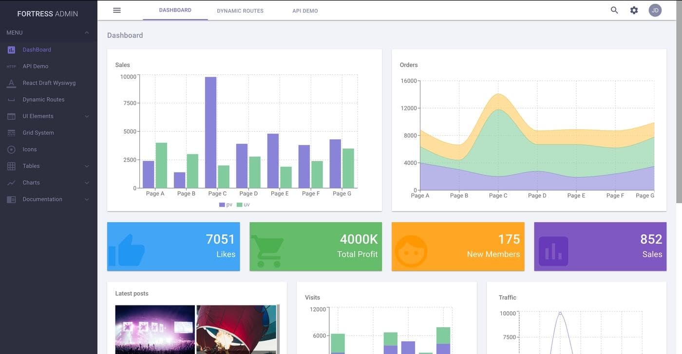 While every React admin template in this list has a good number of reusable UI components to choose from, Jumbo has the most extensive list. With more than 450 UI components (including carousels, popovers, progress bars, subscription bars, and user statistics), this template makes it easy to customize your admin dashboard with very little custom code.