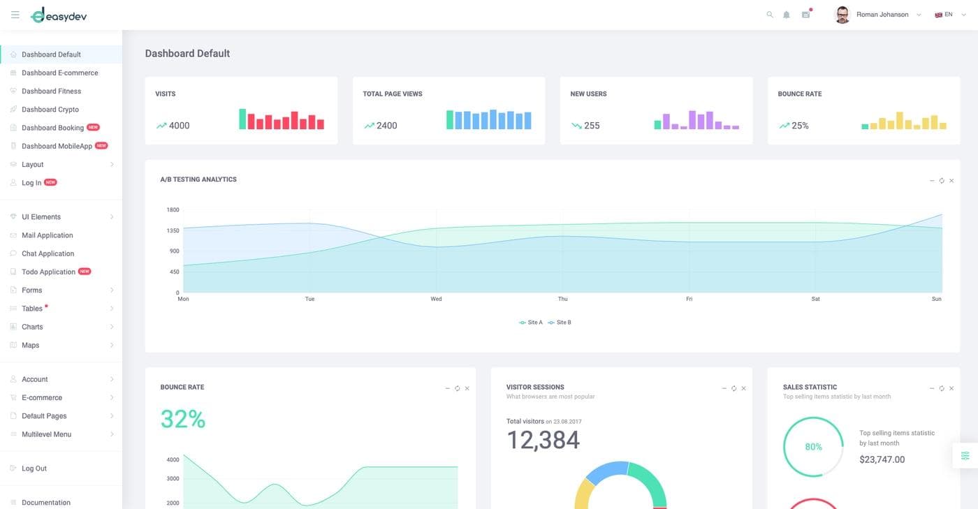 Most React admin templates in this list have a seed project to get you started on building your app, but EasyDev has that and much more. With EasyDev, you’ll find thoroughly commented code, substantial documentation, and video tutorials to help you. If you’re new to React, this is a great template to start with.