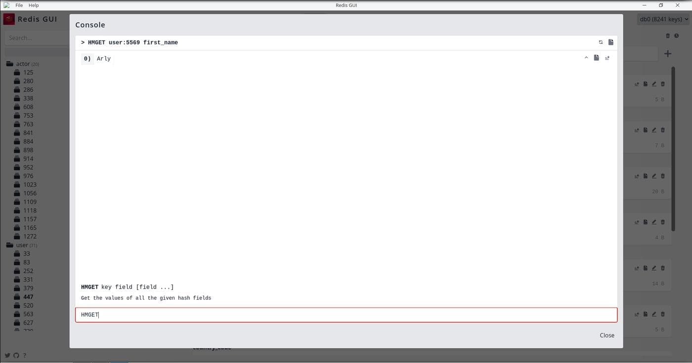Like the other entries on our list, Redis GUI has an integrated command line interface that shows a summary of the commands. However, there is no autocompletion.