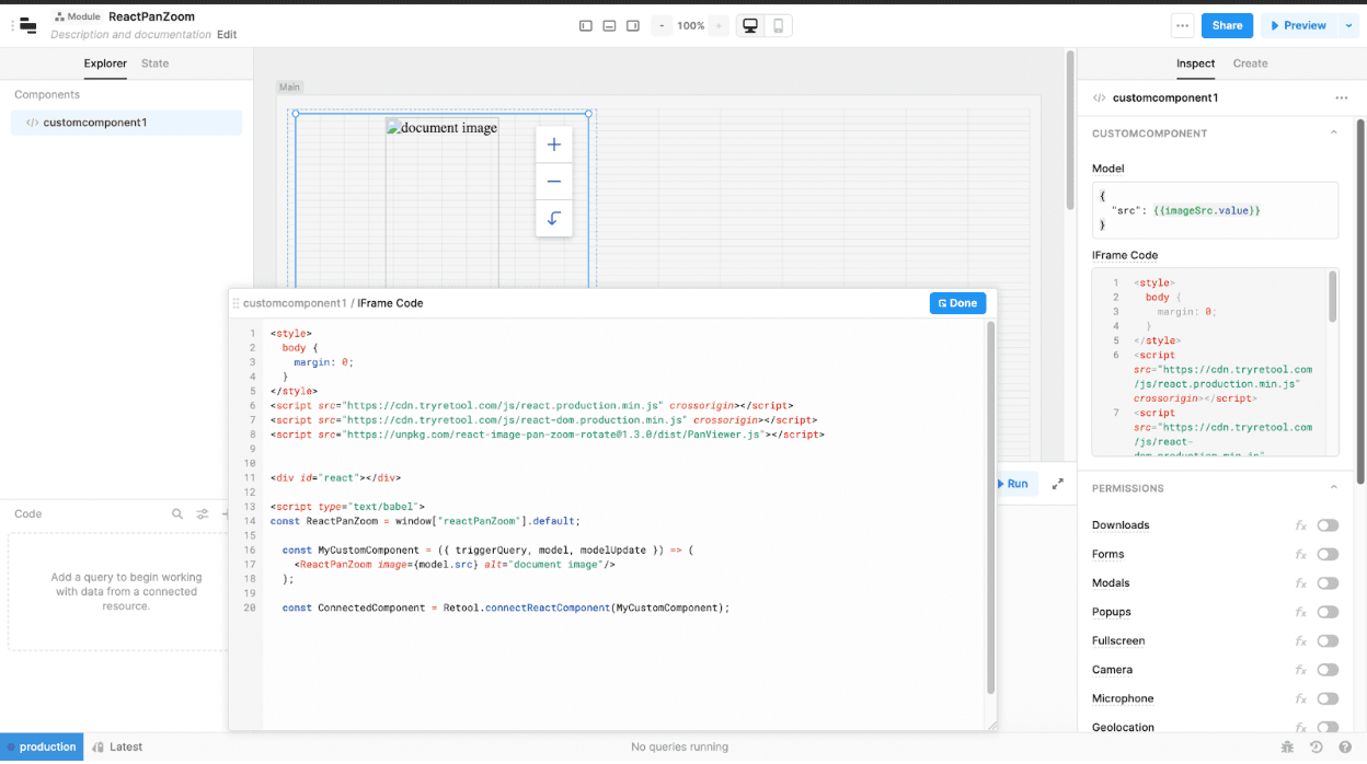 One of the primary custom components made it possible for agents to zoom in and get better visibility on those blurry photo IDs, too. Leader added this custom feature in record time. “The entire custom component for viewing the driver’s license and all the advanced viewing features like panning around the image was built in an hour and half with 20 lines of code,” says Leander.